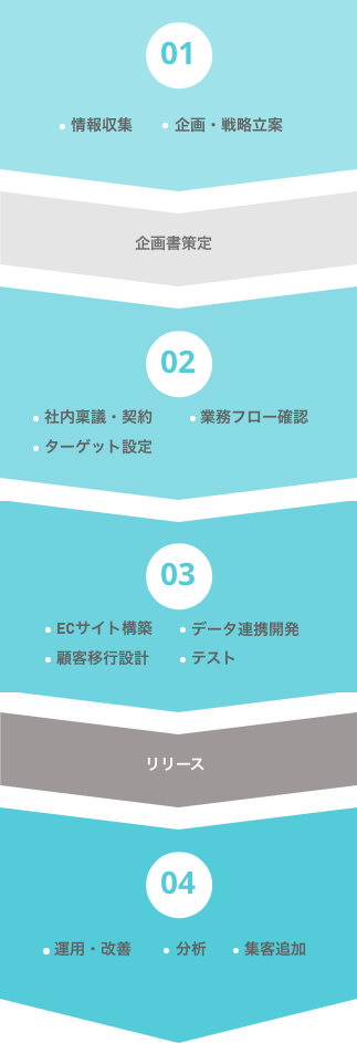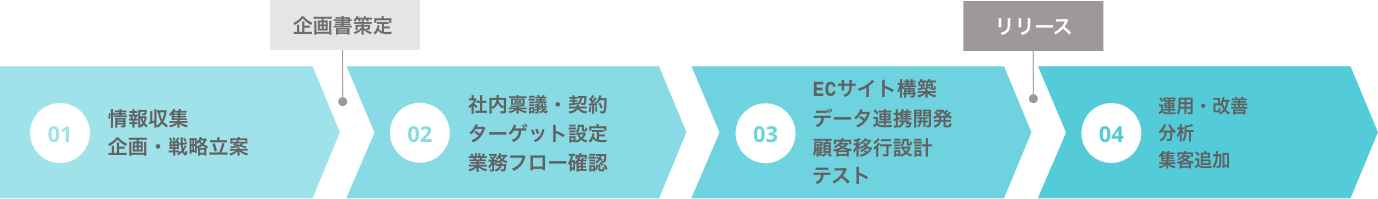 ECサイトの立ち上げ・リニューアルを成功させる鍵は、現実的かつ戦略的なロードマップ設計にあります。弊社では、事業目標・予算・社内体制・スケジュールを踏まえた“フェーズ設計”と“優先順位付け”を軸に、実行可能性の高いEC構築ロードマップを策定。RFP作成支援、ベンダー選定の視点、段階的リリースやグロース施策まで、御社に寄り添った設計支援を行います。